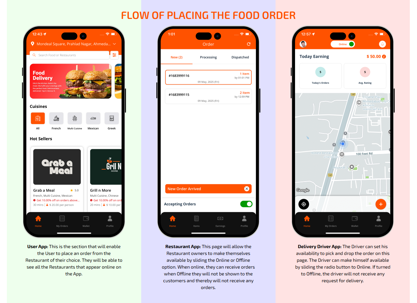 Get an in depth understanding of how the Food App works exactly! There are three different apps at play here to make the entire process of delivery possible.