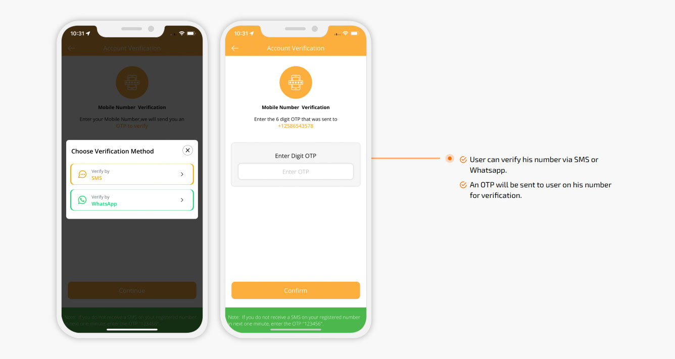 OTP verification via WhatsApp