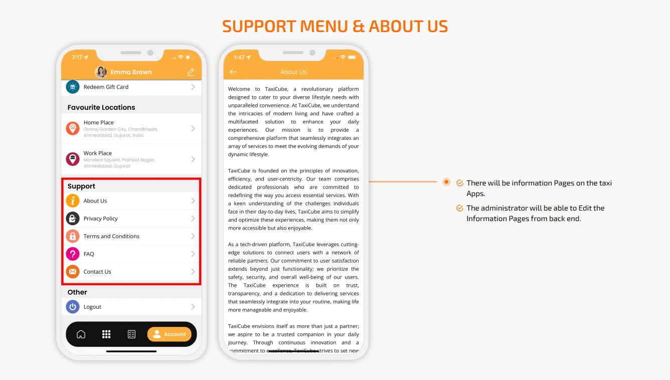 Support Menu & About Us